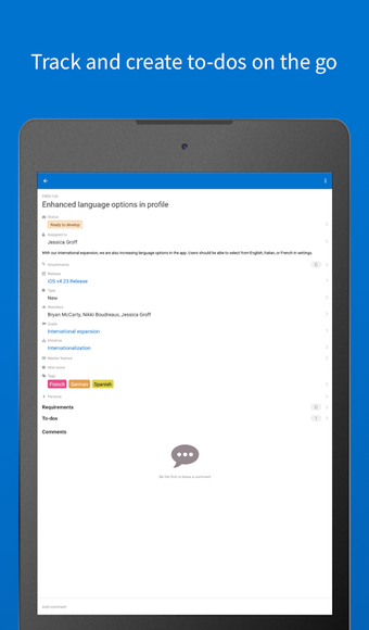Aha! 모바일 앱은 중요한 정보에 접근하고 팀원과 협력하며 이동 중에 업데이트를 받아야 하는 바쁜 팀에 적합합니다.